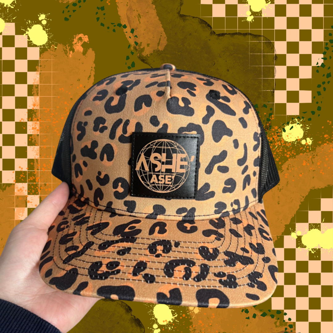 Ase’ Ashe’ Ase’ Leopard Trucker Hat